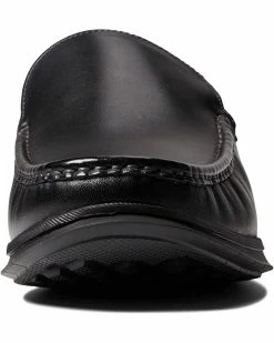 Nice shoe – dressy enough for a suit/tux, but not a hard leather shoe. Has some flex for comfort and a rubber insert in the front sole so you don’t slide all over the pace.